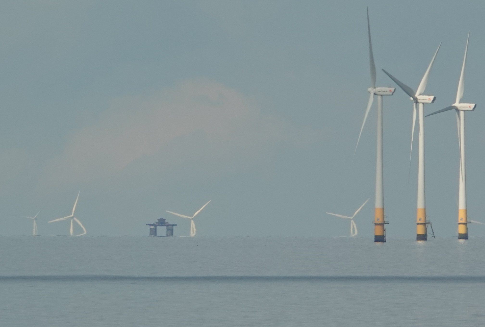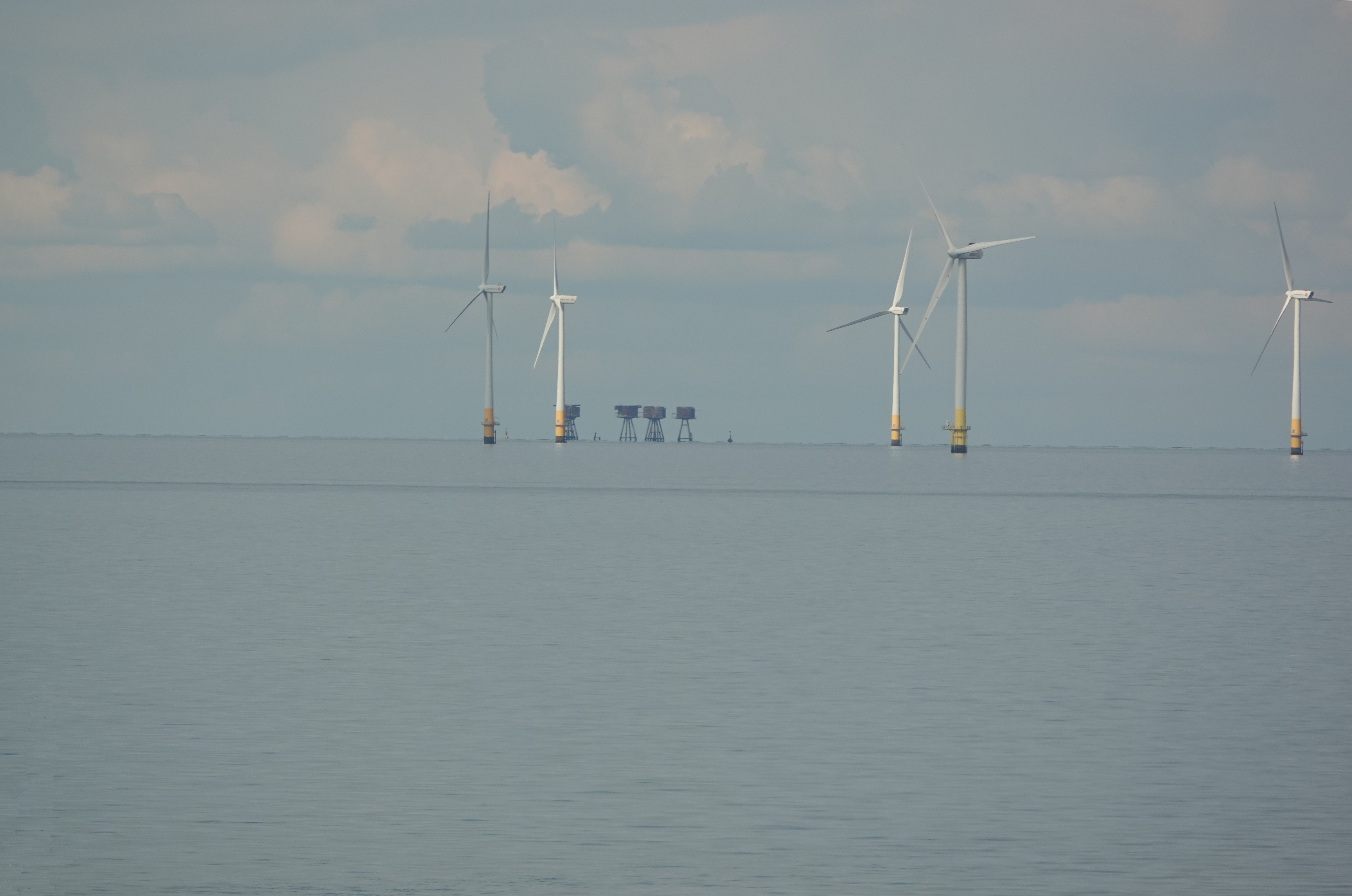 Shivering Sands Army Fort through the Kentish Flats Windfarm