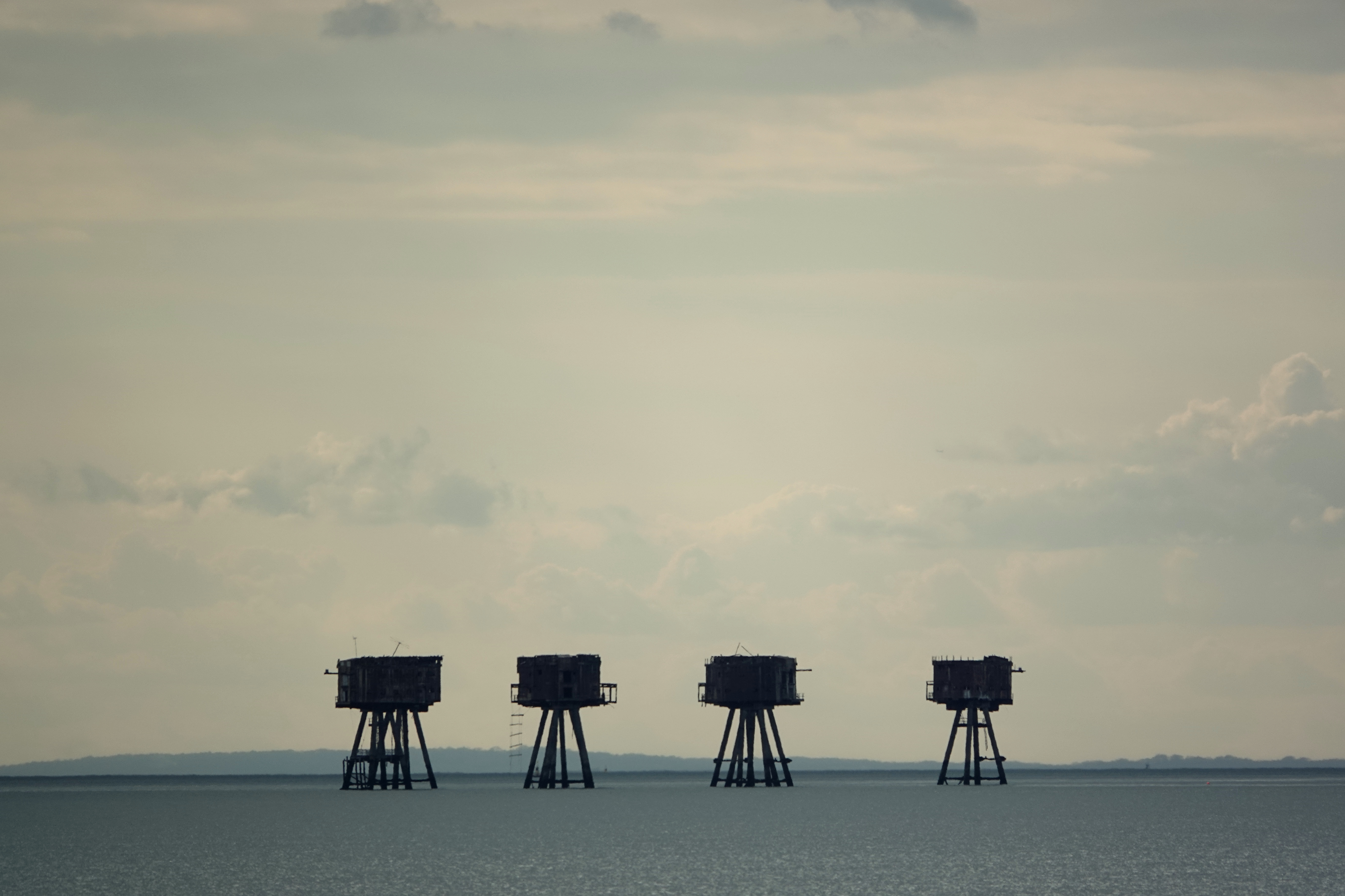 Shivering Sands: Bofors, Control & Gun Tower 3 looking West towards Red Sands