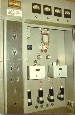 Transmitter power control, tyratrons left with R/F driver and output stages right