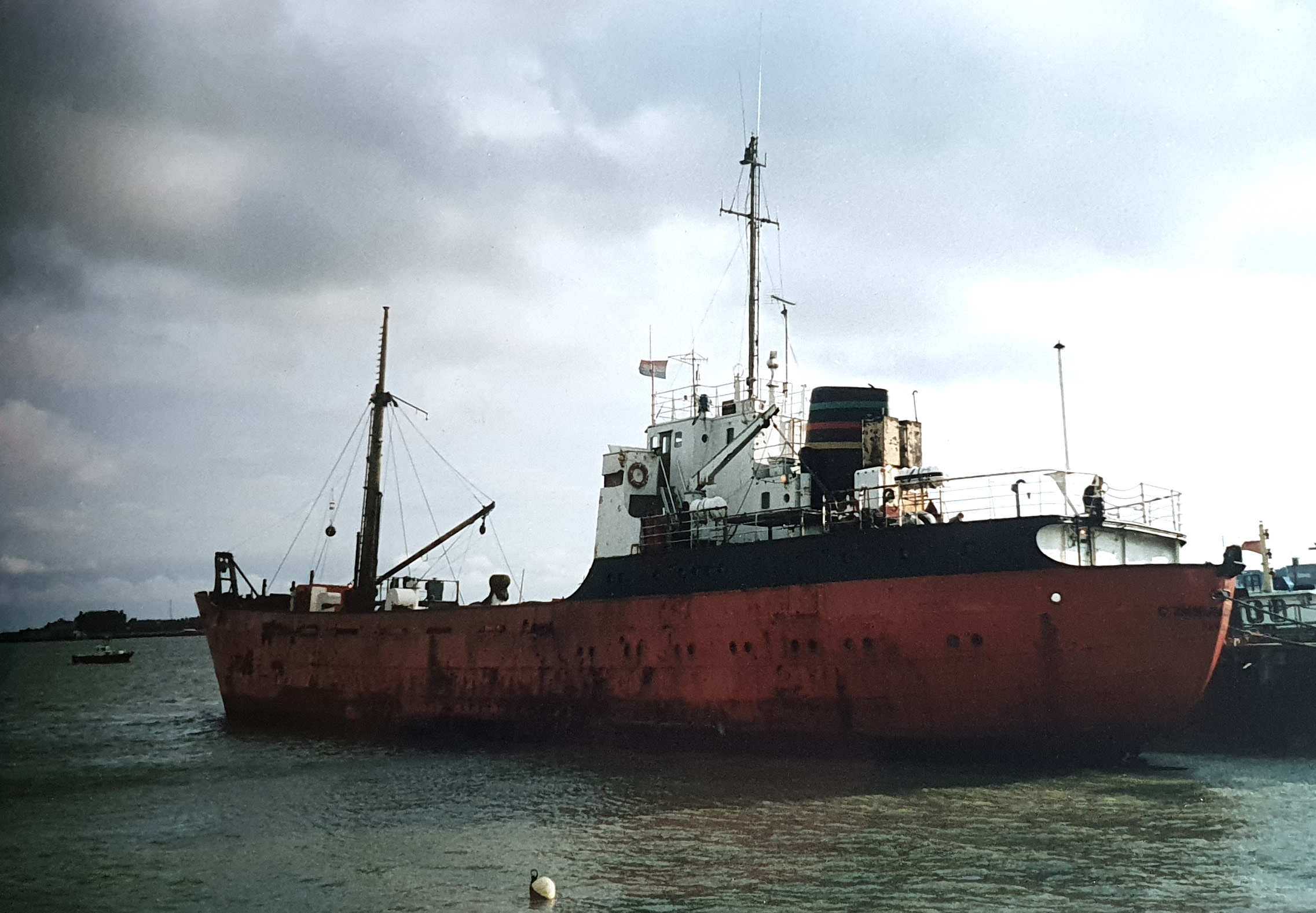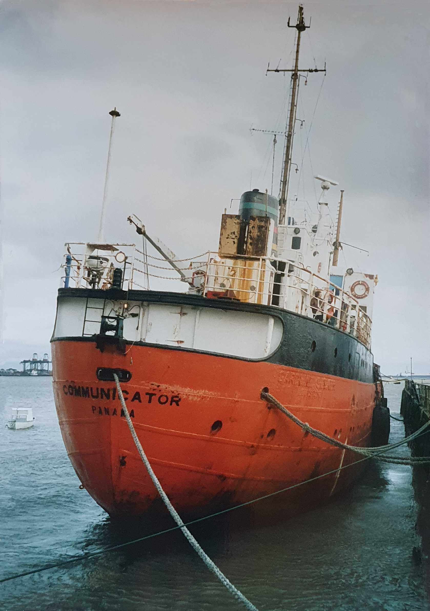 MV 'Communicator' with her broken radio antenna (January 1987)