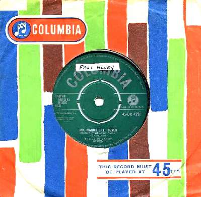 John Barry Seven - "The Magnificent Seven" on Columbia 45-DB-4598 from the 1961 film of the same name