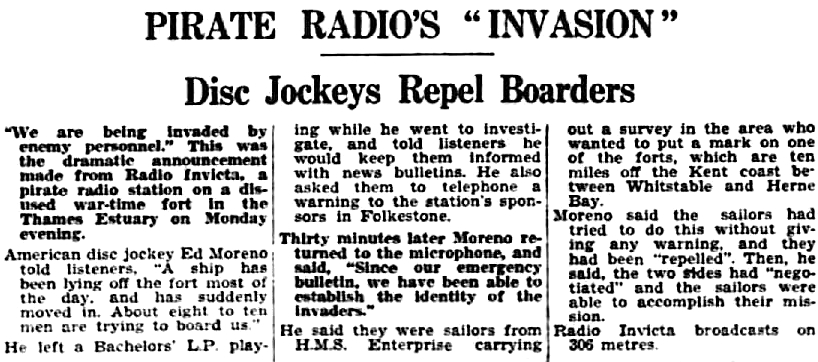 Radio Invicta first all night radio (Daily Mail, 6th October 1964)