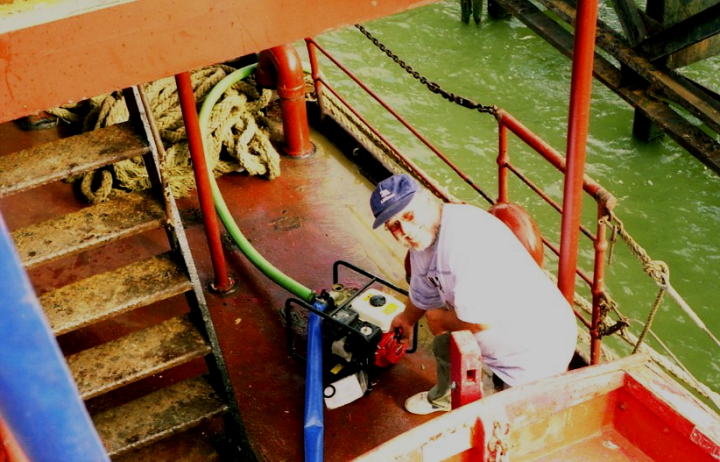 Sea water pump, bleeding the line of air before topping up the heads (toilet)