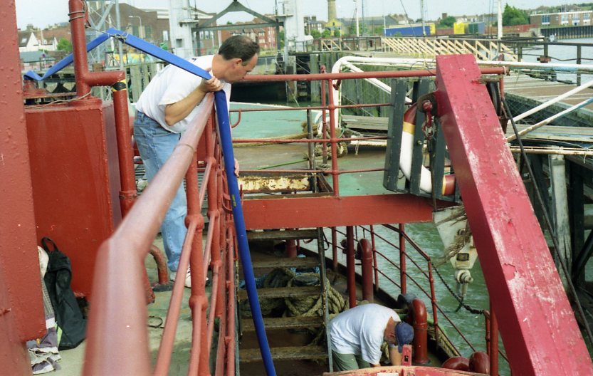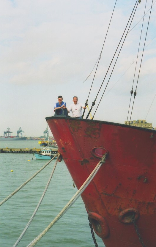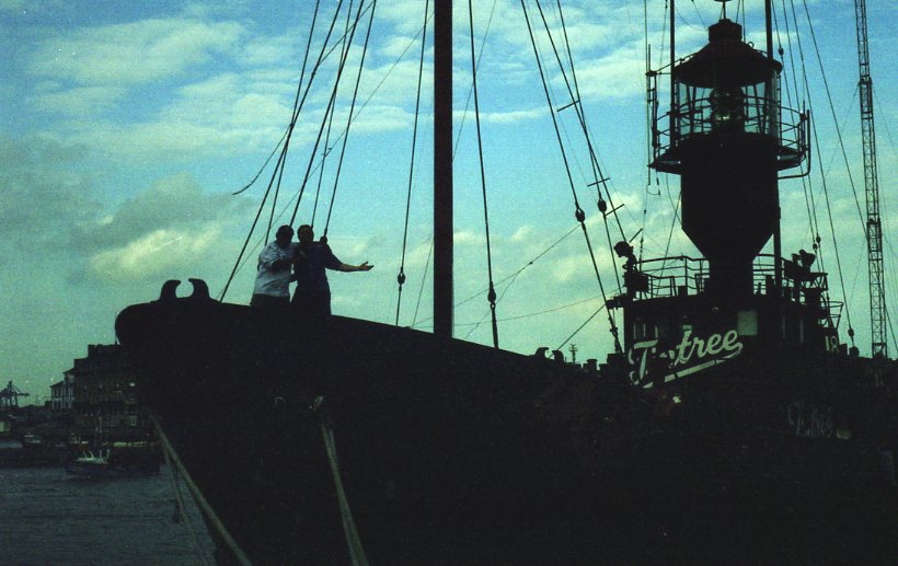 The Radio Northsea International ship, a former Trinity House Light Vessel 18, affectionately named 'Mebo 3' moored at the old Railway Ferry Terminal at Harwich Harbour