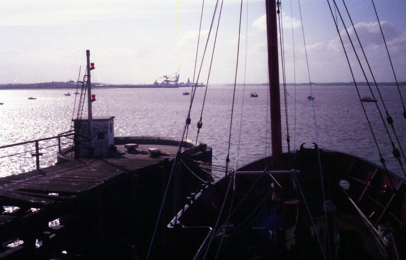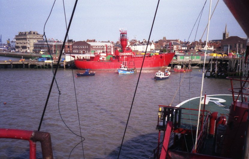 Train Ferry Pier head and Harwich Harbour from the LV18 (April 2000)