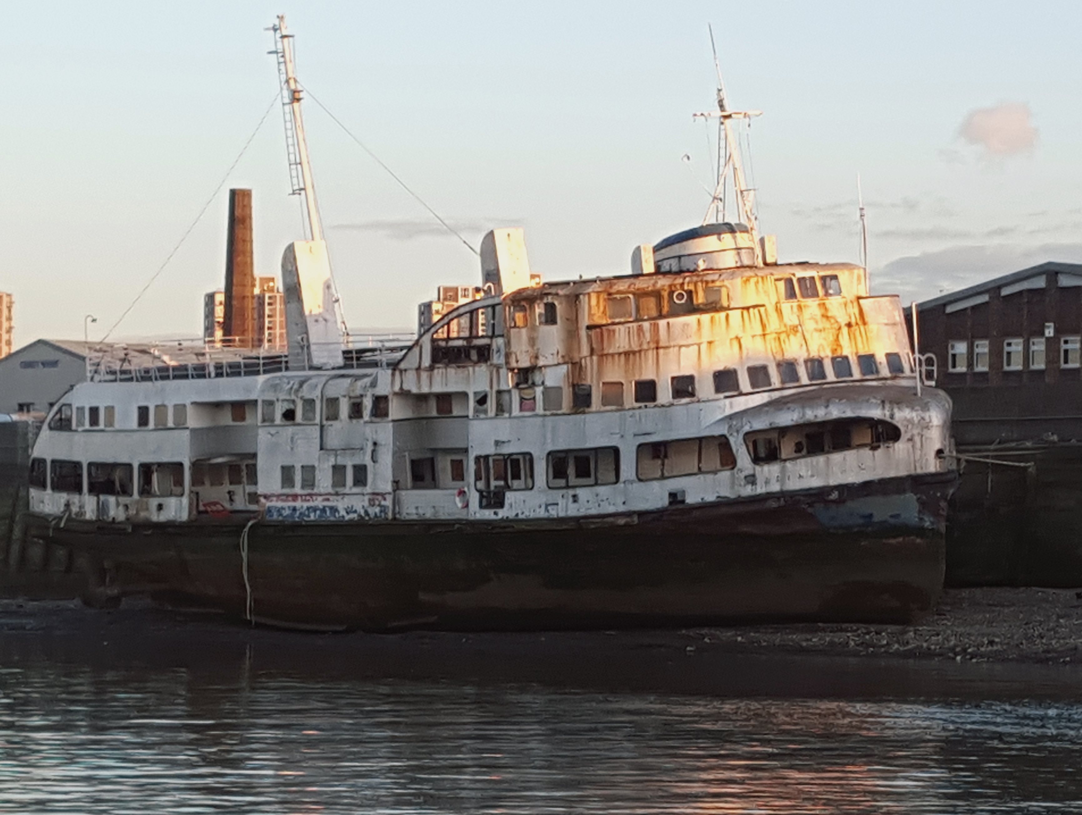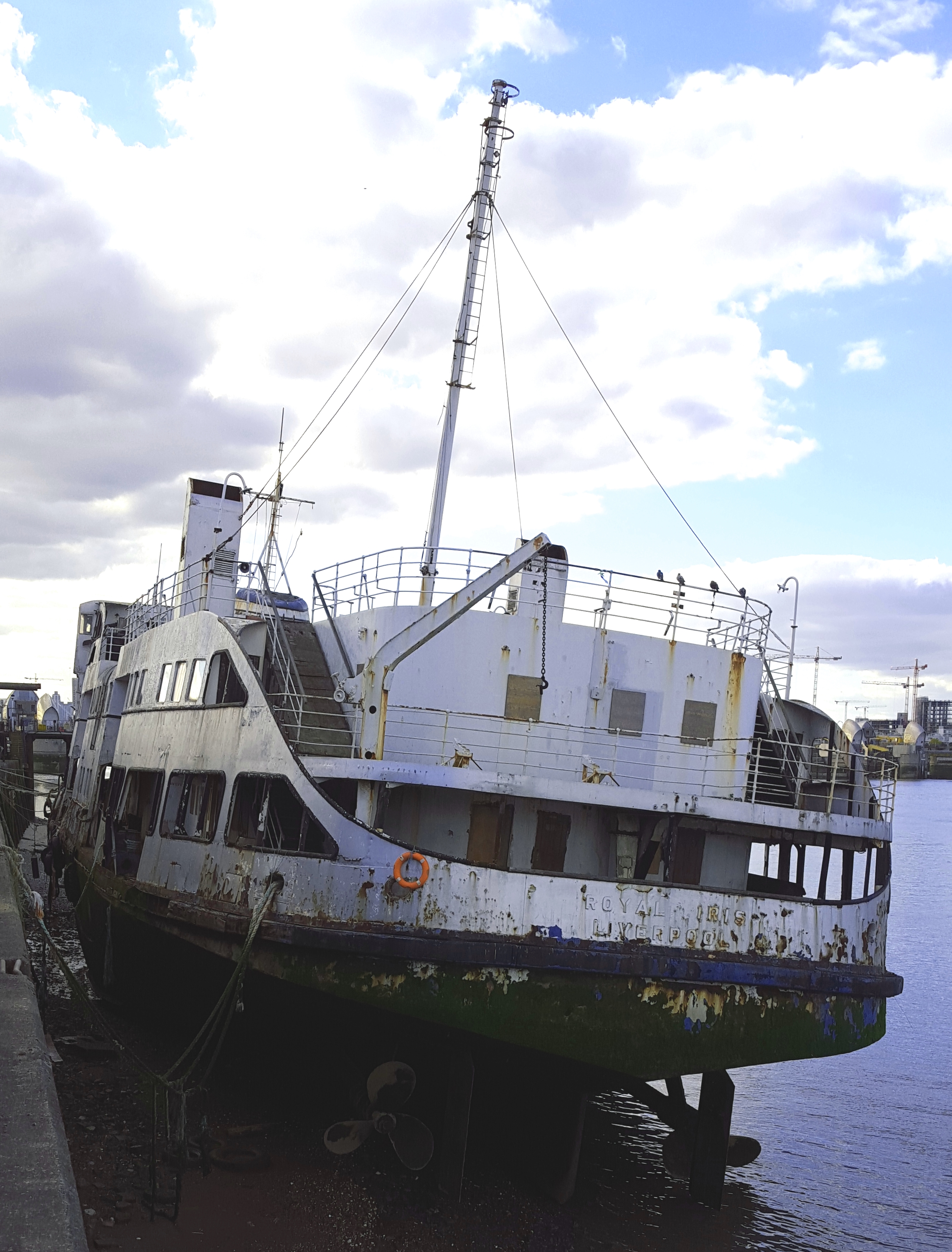 Deciding to investigate the history the old vessel reveals her to be the former Mersey Ferry 'Royal Iris' on the first visit a squatter was living aboard he had later moved on, a follow up broadcast was made alongside the hulk