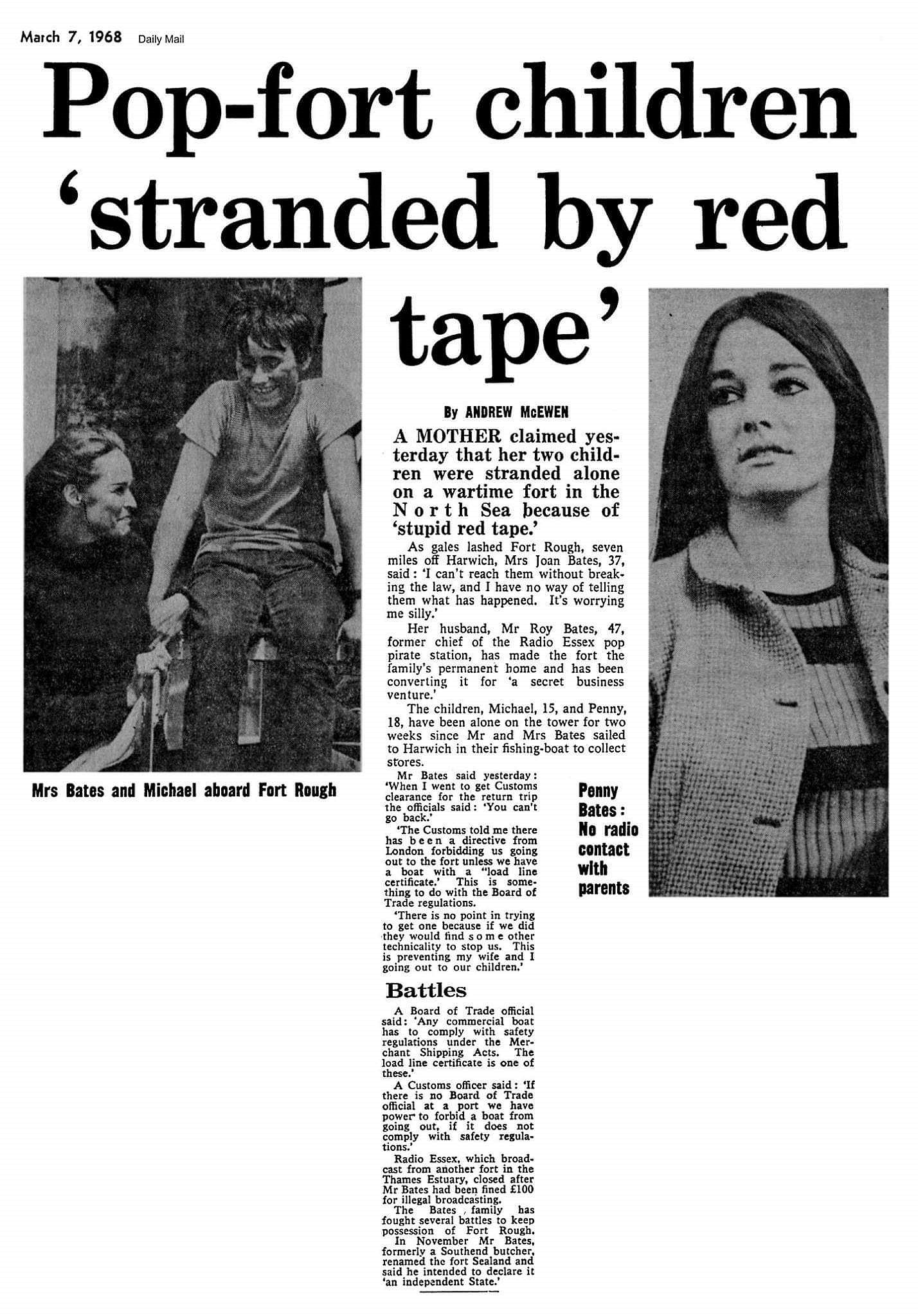 Press shot of Joan & Roy by Roughs the topic of sovereignty of Sealand attracted much media interest (1967)