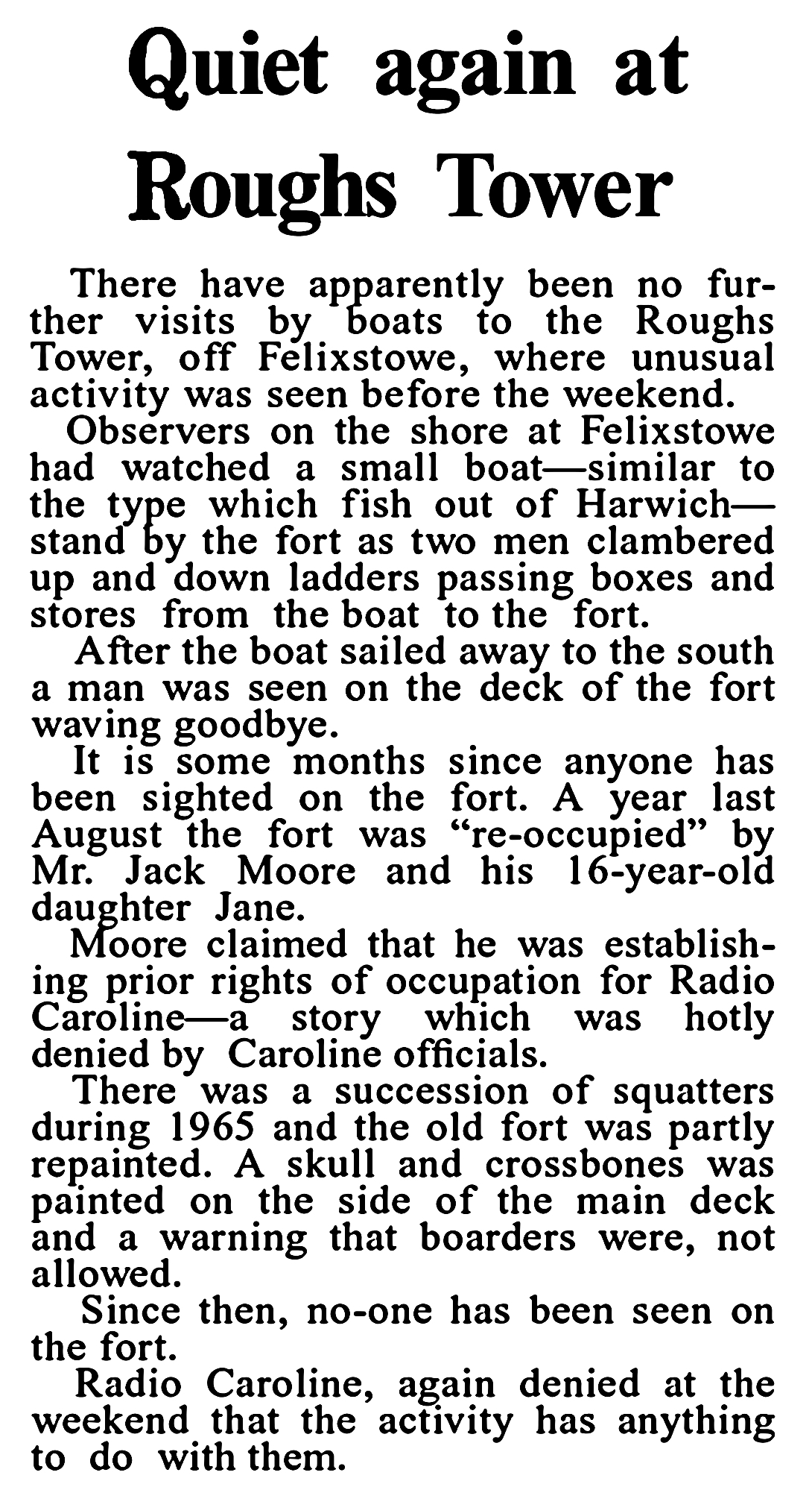 Other than scavenger visits it wasn't until the summer of 1965 that interest was aroused in Roughs Tower by Radio Caroline