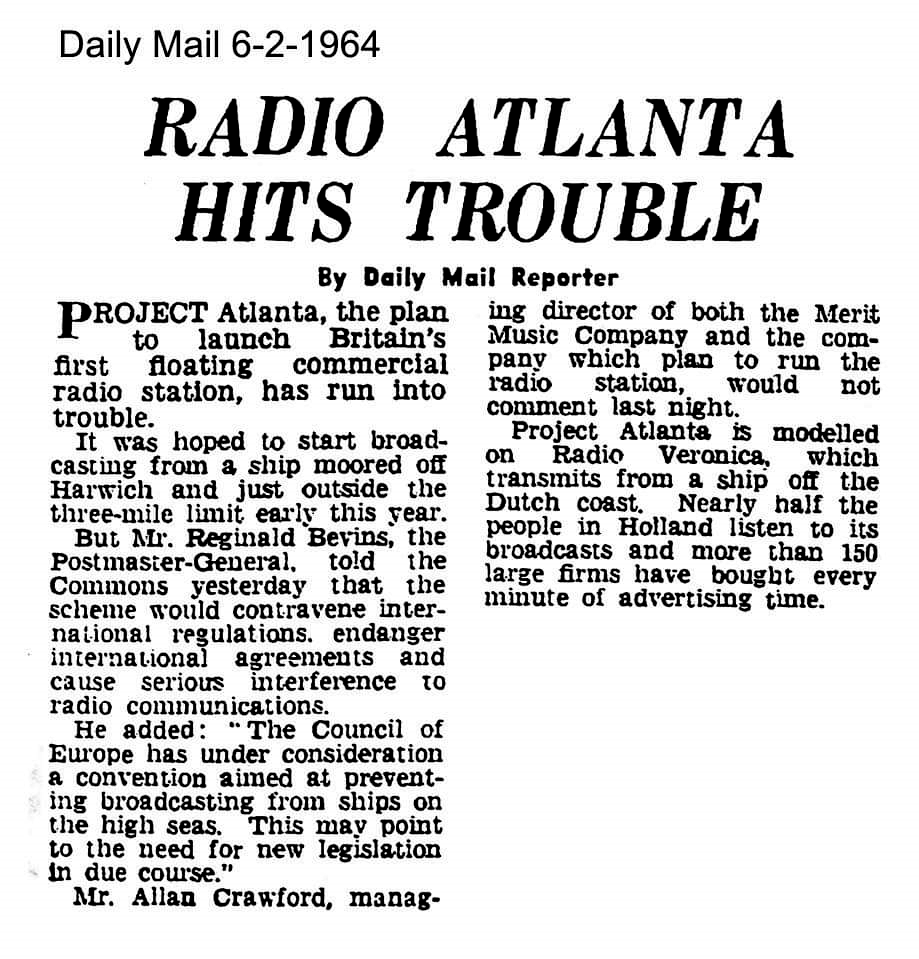Project Atlanta's ship the 'Mi Amigo' of Planet Productions was held up in favour of the 'Fredericia' renamed 'Caroline' by Ronan O'Rahilly after USA President of Irish decent John F Kennedy's daughter
