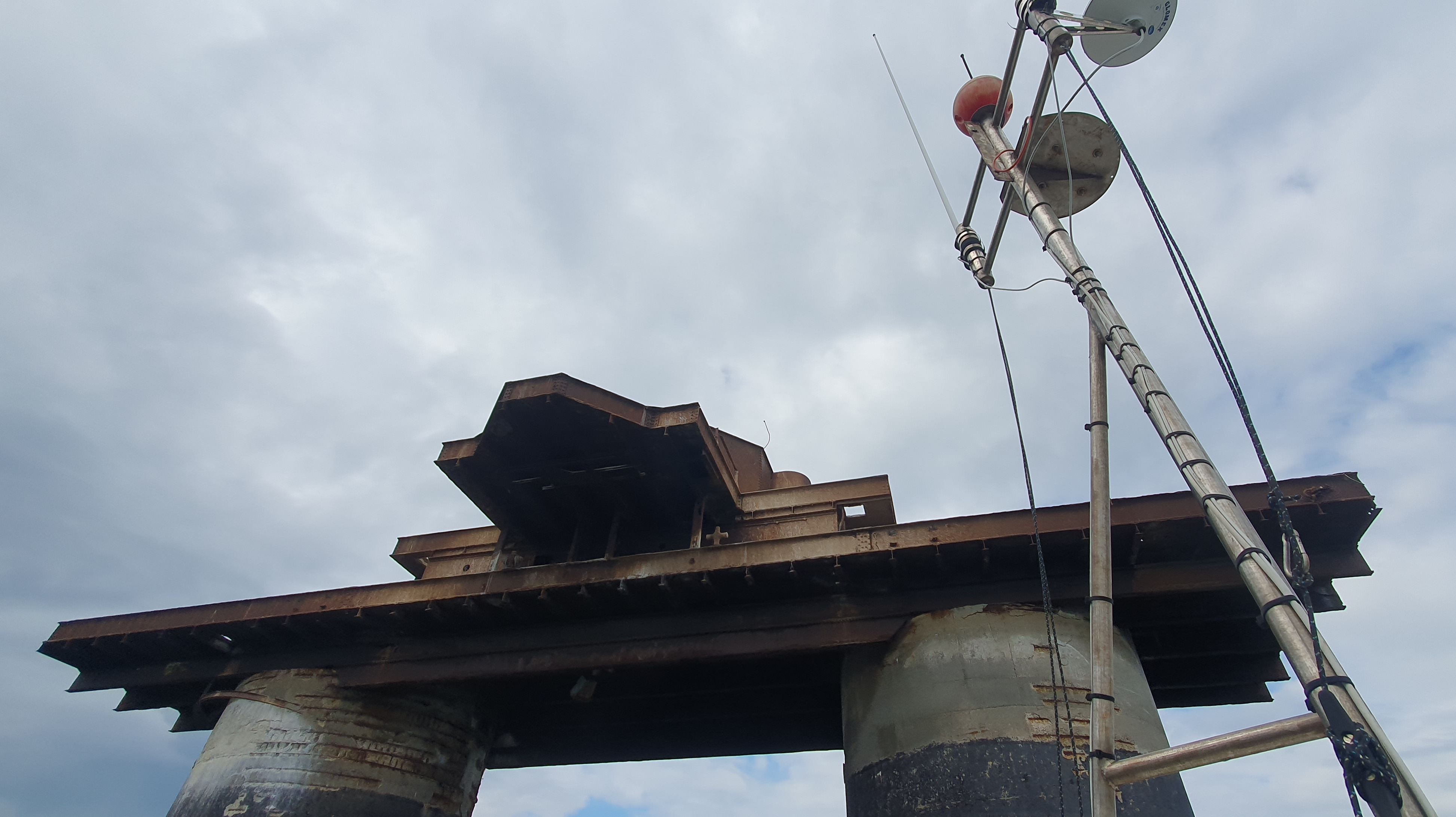 Red Sands: Gun #1, Bofors Towers with remnants of Red Sands Radio antenna
