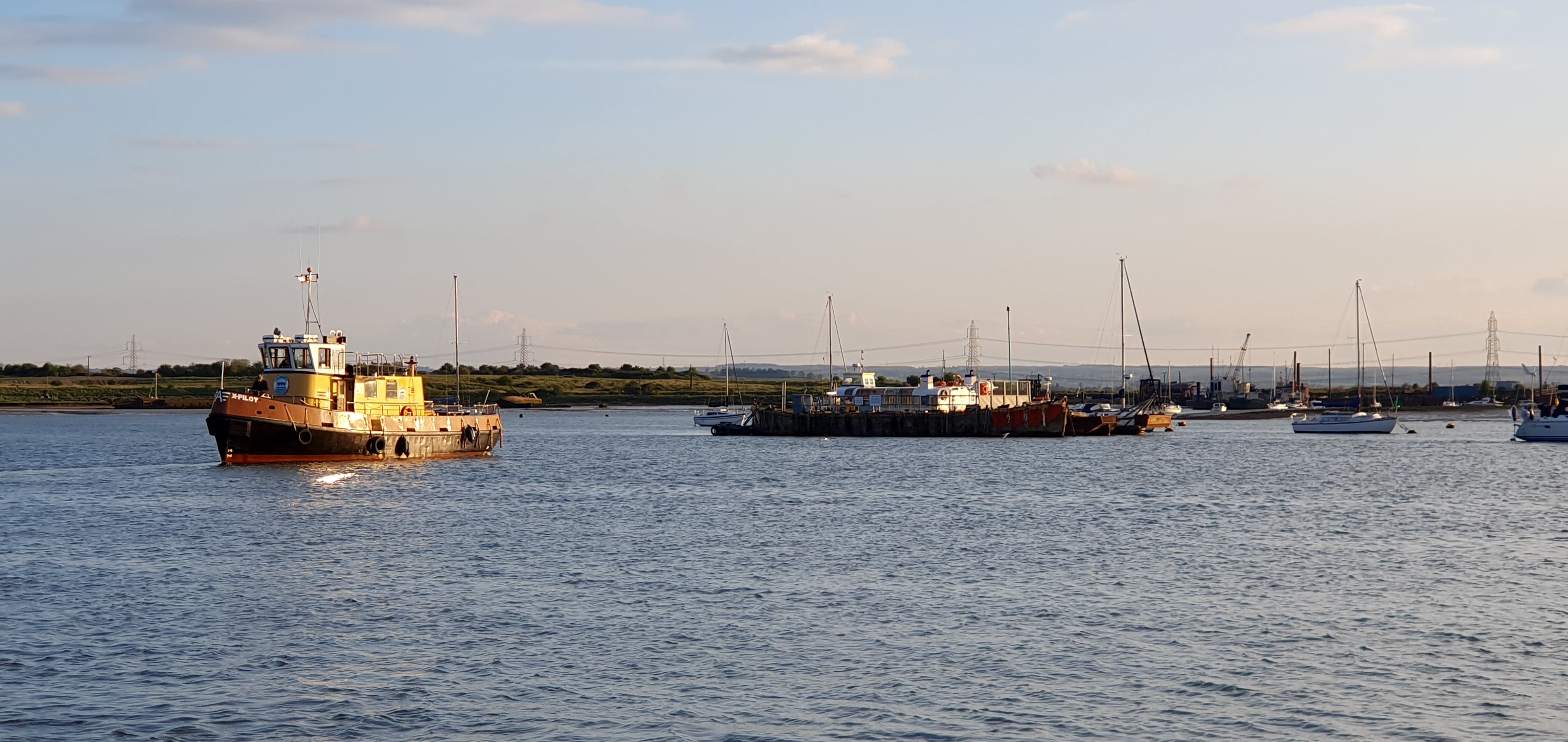 A copy free 'Grand Forts Tours' from the All Tide Landing Queenborough, Sheerness, Isle-of-Sheppey aboard the 'X-Pilot' on 1st May 2023