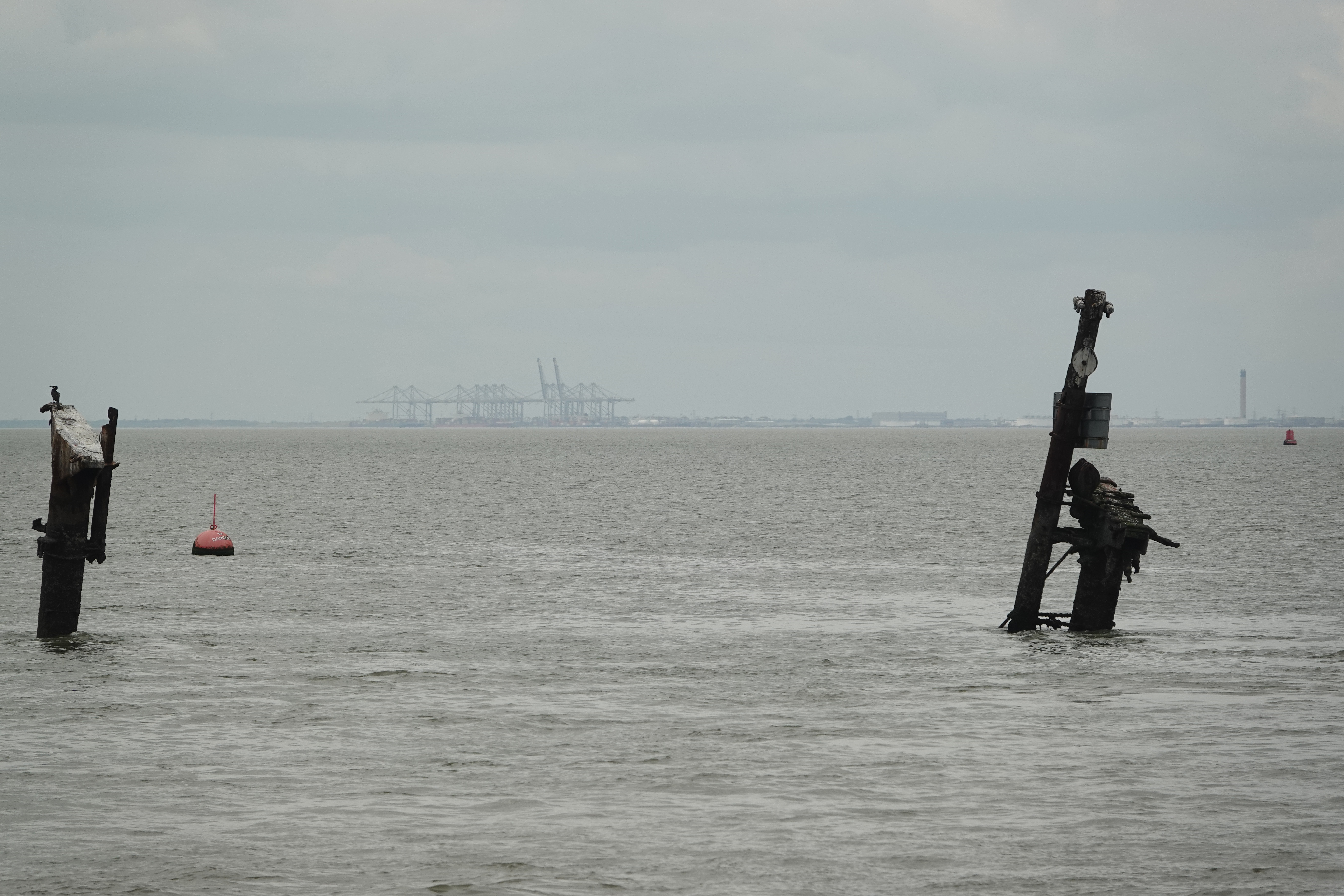 Wreck of 'SS Montgomery' with Mulberry Harbour wreck between Thorpe bay & Shoeburyness