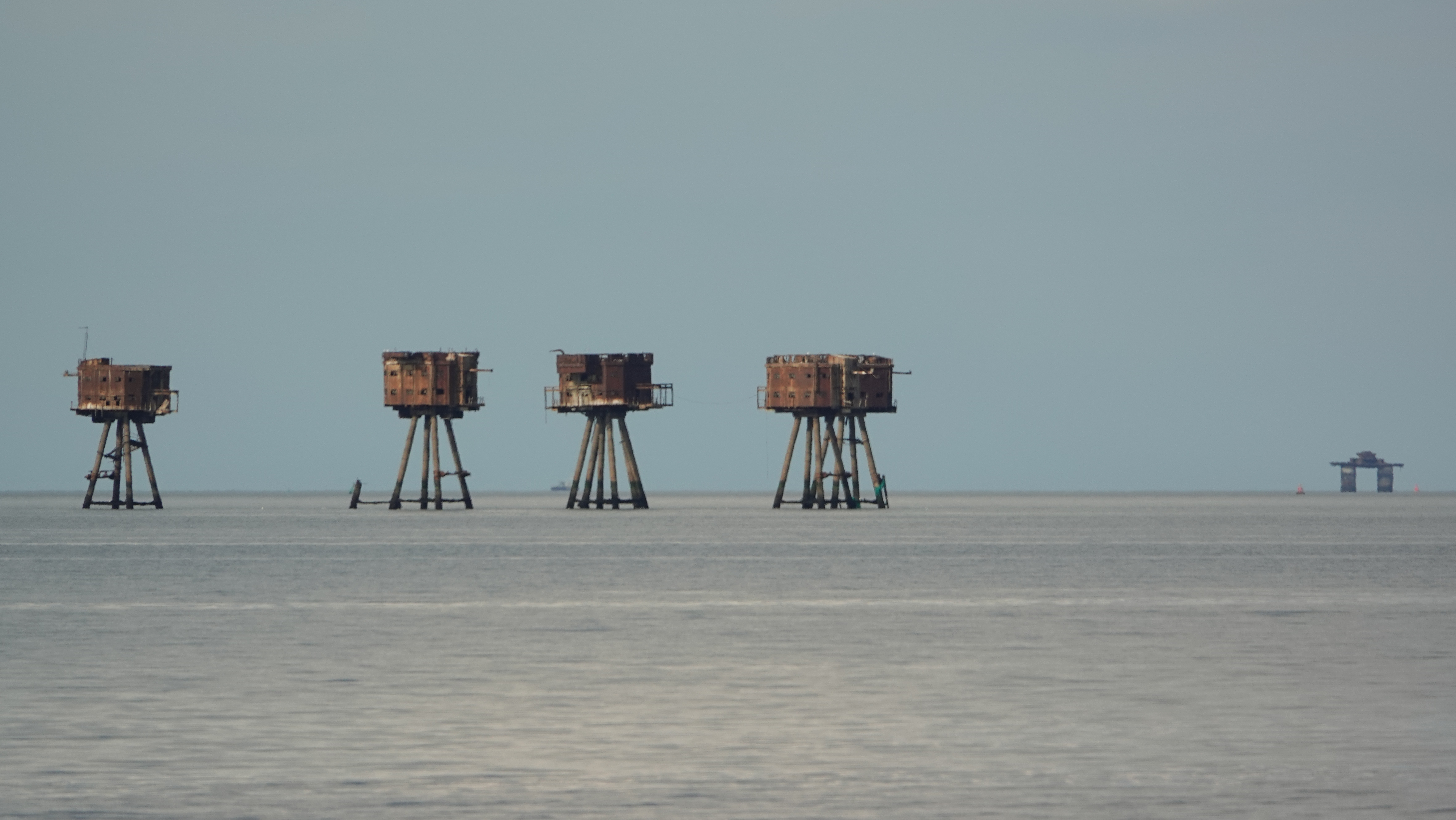 Shivering Sands: Bofors, Control & Gun Tower 3 looking West towards Red Sands