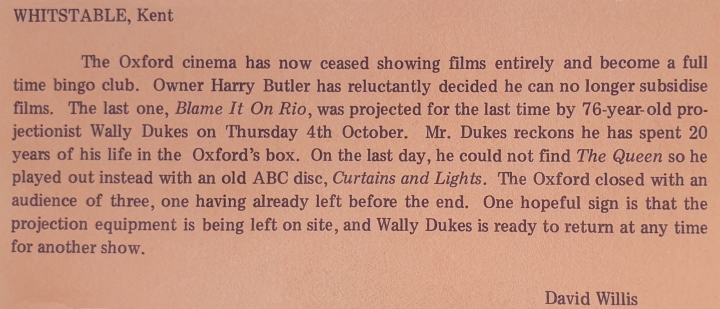 The Oxford's Last Screening (1984)