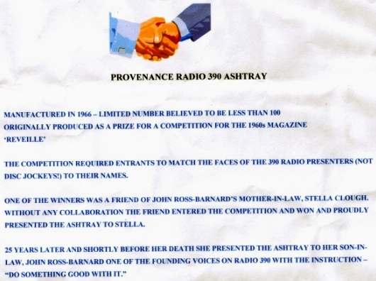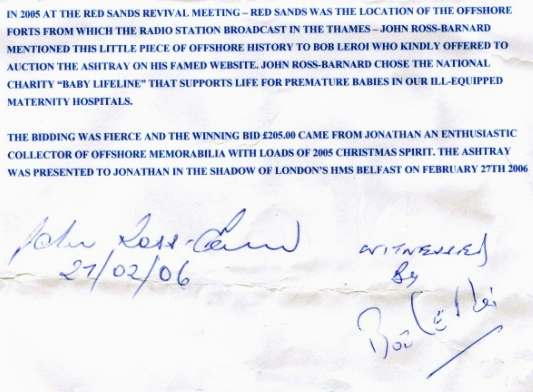 " I really enjoyed meeting you both on Monday, it would have been great to chat for longer but things were against us. The Ashtray is proudly displayed in our kitchen & my children are now of the opinion I am completely crackers! I enjoyed your reminiscences about the fort based stations particularly as they were my favourite listening as a young lad."
