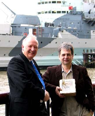 With Jonathan Shirley & John Ross-Barnard alongside HMS Belfast on the River Thames, Tower Bridge, London