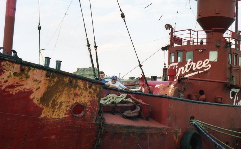 The Radio Northsea International ship, a former Trinity House Light Vessel 18, affectionately named 'Mebo 3' moored at the old Railway Ferry Terminal at Harwich Harbour