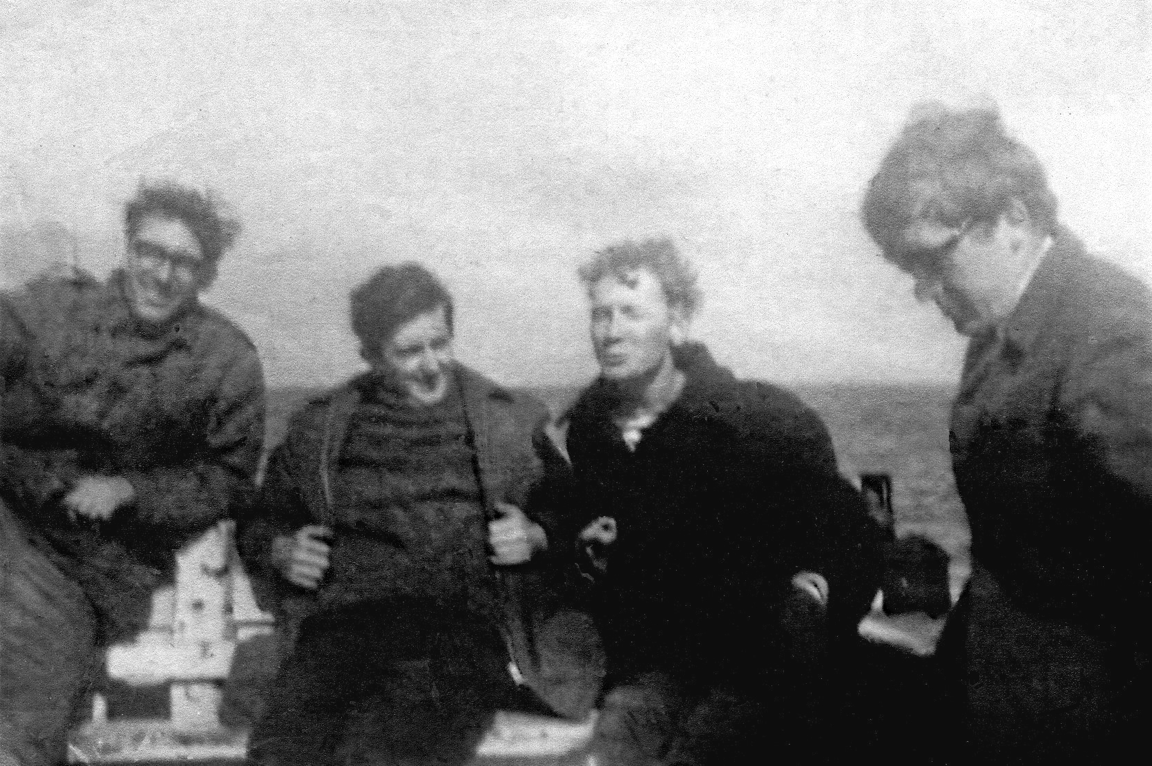 Jerry's girlfriend June on the Harbour East Quay with Eric K Martin and Don Witts in the background seeing the tender off
