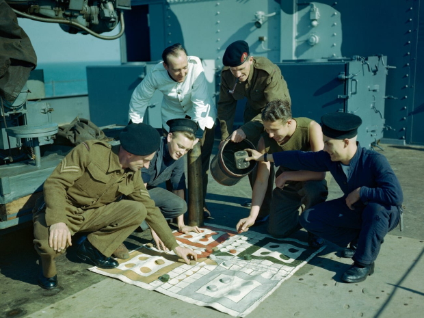 Playing 'Ludo' on Deck (1943) (IWM)