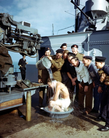Shower time on Deck (1943) (IWM)